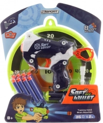 Pistolet, tarcza, 8× piankowy nabój, śrubokręt