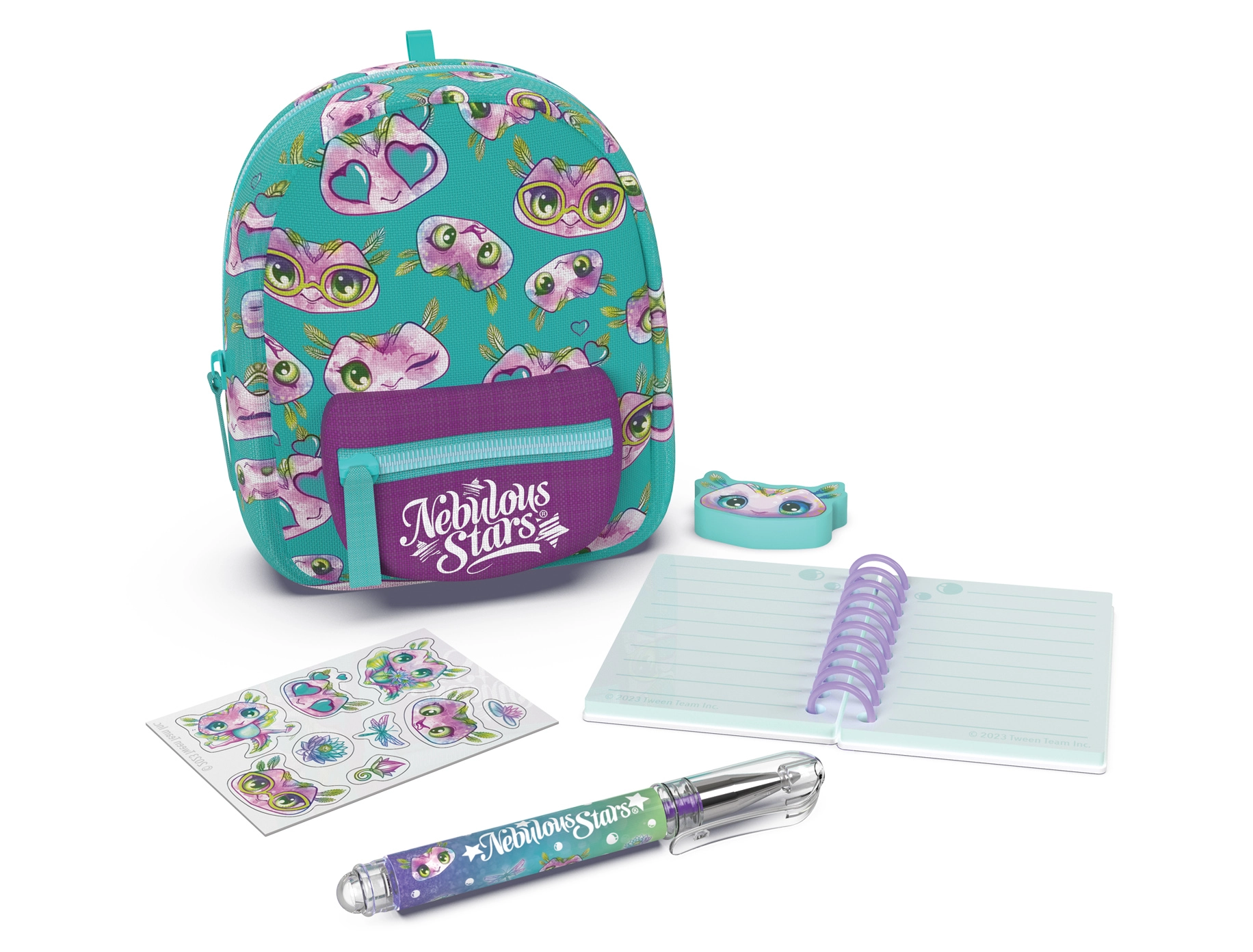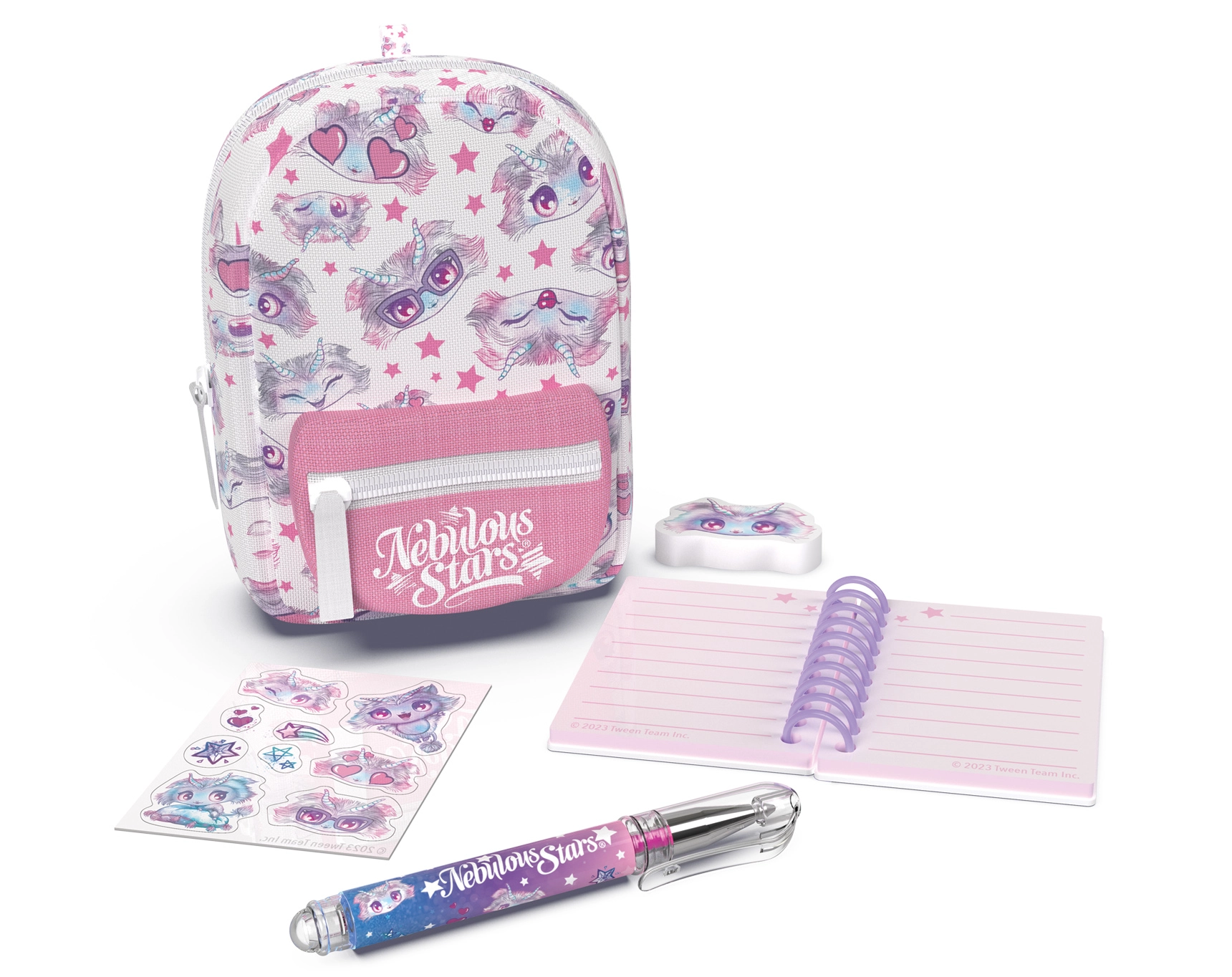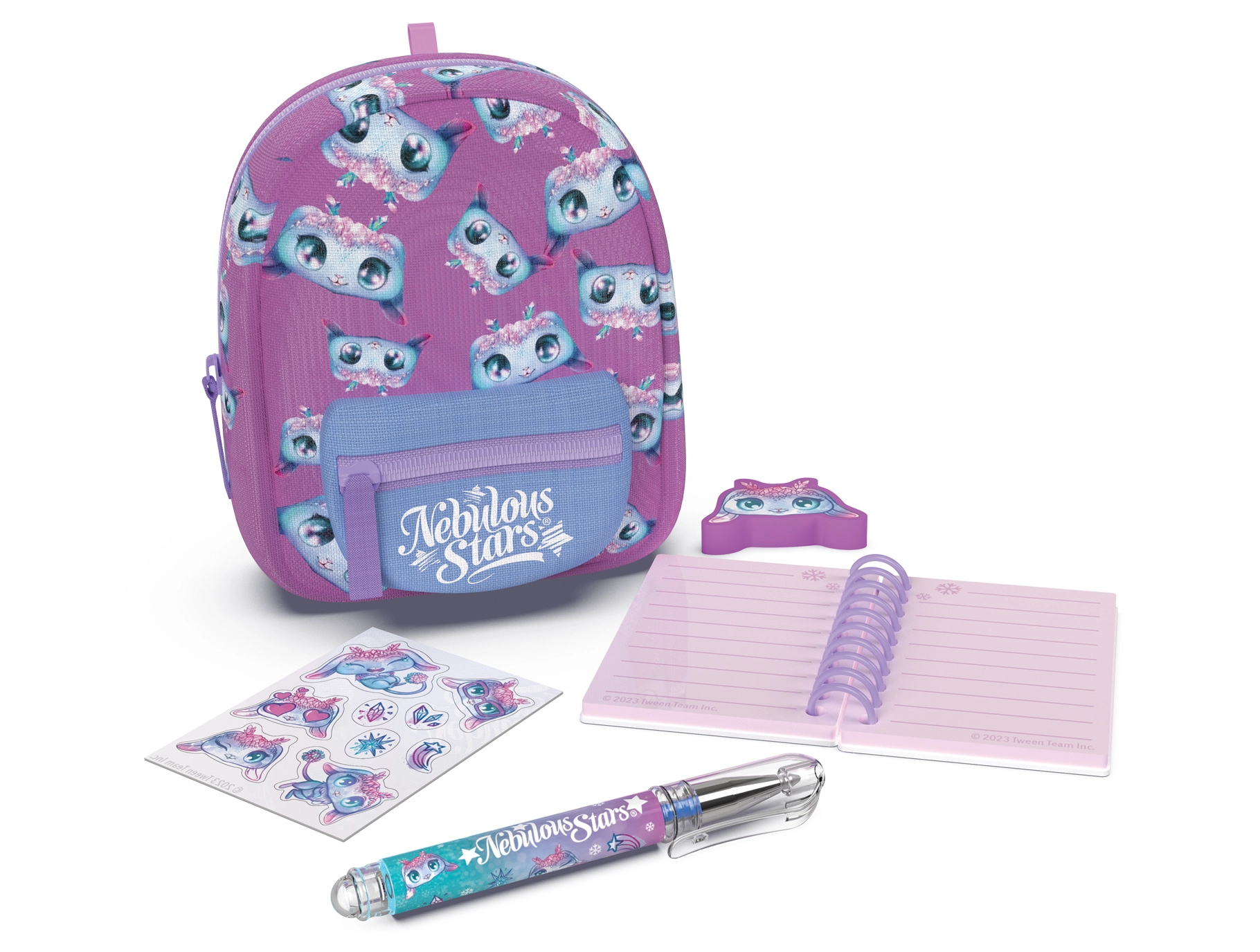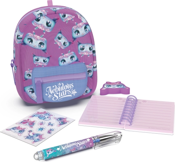 Stylowy mini plecaczek NEBULOUS STARS z zestawem papeteryjnym jest idealny dla małych miłośników tworzenia oraz w podróż. W kompaktowych wymiarach 9 × 6 × 11 cm kryje wszystko, co potrzebne: notes w linie, długopis, gumkę, naklejki i uroczy breloczek. Dostępne są 3 wersje kolorystyczne – niebieska, biała i fioletowa.