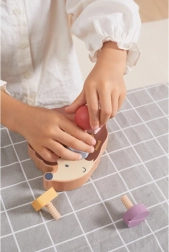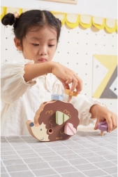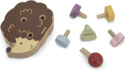 Drewniany jeż umożliwia dzieciom trenowanie małej motoryki za pomocą śrubek w różnych kolorach i kształtach.