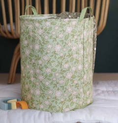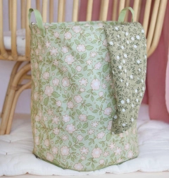 Ozdób swój dom tym koszem z pięknym kwiatowym wzorem na szałwiowo-zielonym tle.