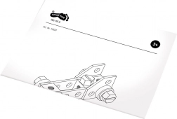 skrzynka/warsztat, młotek, klucz, śrubokręt, 7× śruba, 5× nakrętka, 2× duża perforowana płytka, 2× mała, 1× średnia, 2× w kształcie diamentu, 2× prostokątna, 4× gruba podkładka, 4× cienka podkładka, 2× koło zębate