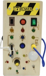 Przełączanie przełączników, naciskanie przycisków i operowanie kluczykiem wzmacnia paluszki i poprawia koordynację ręka–oko.
