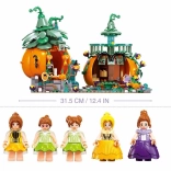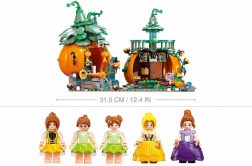 - Elementy do budowy dyniowych domków, minifigurki, mały pojazd, akcesoria, instrukcja
