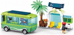 Zestaw zawiera także ozdobny przystanek oraz palmę, które dodają realistycznego wyglądu środowisku gry.