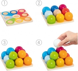 Ta drewniana piramida kulek to idealne narzędzie do rozwoju umiejętności dzieci. Dzieci mogą sortować kulki według kolorów i układać w różne kształty, wspierając swoją kreatywność. Każda kulka charakteryzuje się żywymi barwami, które uczą dzieci różnorodności kolorystycznej.