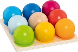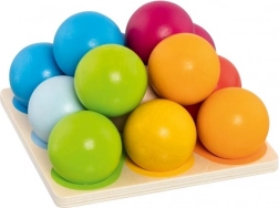 Kulki o średnicy Ø4,6 cm oraz podstawka o wymiarach 15x15x11 cm są idealne dla małych dziecięcych rączek. Zabawka wykonana jest z naturalnego drewna, które jest bezpieczne dla dzieci.