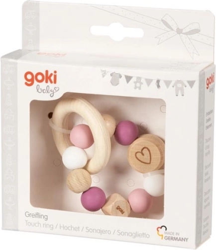 Goki dotykowy motoryczny gryzak serce rozwija motorykę dzieci. Bezpieczny, ręcznie wykonany w Niemczech.