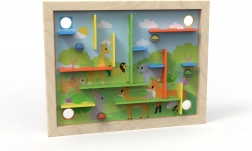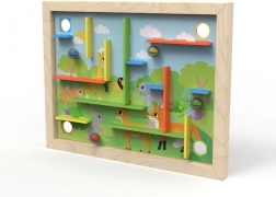 - Dzieci mogą ćwiczyć swoje zdolności, przechylając podstawową planszę i starając się umieścić kulki w wyznaczonych otworach.
