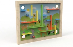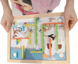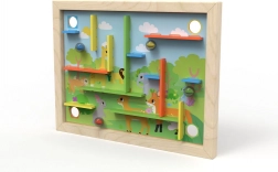 Ten zaprojektowany z myślą o dzieciach labirynt to zabawne i rozwojowe narzędzie. Zawiera 22 elementy, które można umieszczać w różnych otworach na planszy zgodnie z kolorowymi wskazówkami lub według własnego pomysłu.