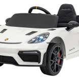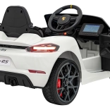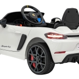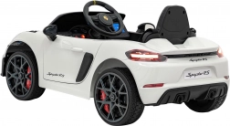 Stylowy dziecięcy samochodzik elektryczny inspirowany modelem Porsche 718 Spyder RS zachwyca realistycznym wyglądem, gumowymi kołami EVA, skórzanym siedziskiem oraz bogatym wyposażeniem multimedialnym z Bluetooth, USB, MP3 i radiem FM. Dwa silniki 2×45 W, akumulator 12 V 7 Ah, łagodny start, światła LED oraz zdalne sterowanie 2,4 GHz z przyciskiem bezpieczeństwa Stop zapewniają bezpieczną i pełną frajdy jazdę.
