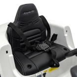 Miękkie koła EVA, pełne zawieszenie oraz siedzisko z eko skóry z pasami bezpieczeństwa gwarantują wygodę także podczas dłuższych przejażdżek.