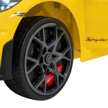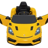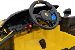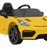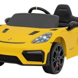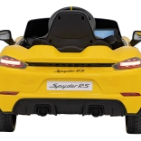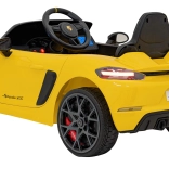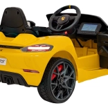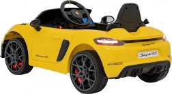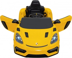 Stylowy dziecięcy sportowy samochód Porsche 718 Spyder RS zapewnia małym kierowcom realistyczne wrażenia z jazdy. Oferuje 2× 45 W silniki, akumulator 12 V 7 Ah, piankowe koła EVA, otwierane drzwi oraz światła LED z przodu i z tyłu. Komfort zapewnia fotel z eko skóry z pasami bezpieczeństwa, a zabawę panel audio z MP3/USB/AUX, Bluetooth, radiem FM i ekranem MP4. Sterowanie możliwe jest także za pomocą pilota 2,4 GHz z płynnym startem i przyciskiem Stop.