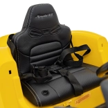 Wnętrze zachwyca fotelem z eko skóry z pasami bezpieczeństwa oraz bogatym panelem multimedialnym: MP3, USB, AUX, radio FM, Bluetooth i ekran MP4 do wideo i muzyki. Rodzice docenią pilot 2,4 GHz z trzema prędkościami i awaryjnym przyciskiem Stop, co pozwala mieć jazdę dziecka zawsze pod kontrolą.