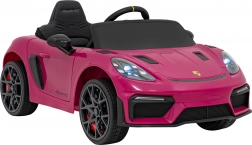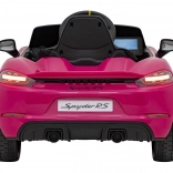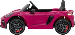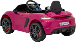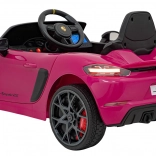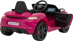 Stylowy dziecięcy elektryczny samochodzik licencjonowany Porsche 718 Spyder RS w różowym kolorze oferuje realistyczne wrażenia z jazdy dzięki dwóm silnikom 2x45 W, akumulatorowi 12V7Ah oraz miękkim kołom EVA. Zdalne sterowanie 2.4 GHz z przyciskiem bezpieczeństwa Stop, światła LED z przodu i z tyłu, ekoskórzane siedzisko z pasami oraz multimedialny panel MP4 z Bluetooth, USB, MP3 i radiem FM gwarantują komfort, bezpieczeństwo i zabawę.