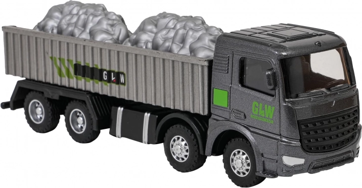 Metalowy model ciężarówki w skali 1:55 jest idealny dla dzieci od 3 lat. Solidna konstrukcja zapewnia długą żywotność oraz płynny ruch do przodu i do tyłu.