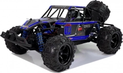 Bezprzewodowy kontroler na częstotliwości 2,4 GHz pozwala ścigać się w kilka osób bez wzajemnych zakłóceń. Płynna regulacja gazu i skrętu, zasięg do 80 m oraz czas jazdy około 18 minut na jednym ładowaniu akumulatora 7,4 V 1200 mAh zapewniają mnóstwo zabawy. Ładowanie przez USB trwa około 2 godziny. Model przeznaczony dla użytkowników od 14 lat.