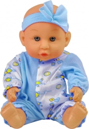 Urocza laleczka niemowlę w niebieskim ubranku z opaską i kokardką zapewnia godziny zabawy i nauki. Dzięki funkcji pije i siusia dzieci uczą się opieki nad niemowlęciem, rozwijają małą motorykę, empatię i odpowiedzialność. W zestawie znajduje się buteleczka i nocnik, lalka ma ruchome ręce, nogi i główkę i wygląda bardzo realistycznie.