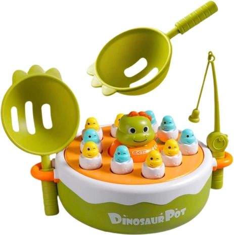 Zabawna drewniana gra w łowienie dinozaurów rozwija małą motorykę, koordynację oko–ręka oraz spostrzegawczość dzieci. Za pomocą magnetycznych wędek dzieci łowią elementy dinozaurów i mają godziny kreatywnej zabawy. Wysokiej jakości drewniane wykonanie, certyfikat CE i zgodność z EN71. Odpowiednia od 3 lat.