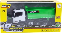 - Zdalne sterowanie: Kontroler 2,4 GHz umożliwia jazdę do przodu, do tyłu i na boki, w tym sterowanie światłami i podnoszeniem wywrotki jednym przyciskiem.