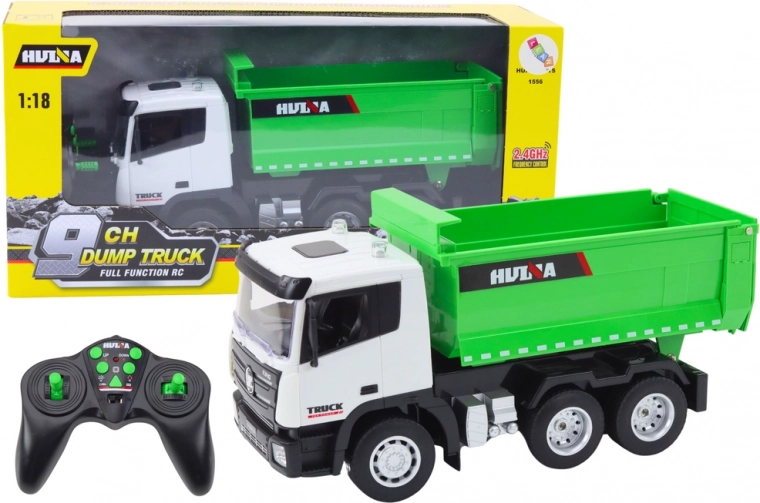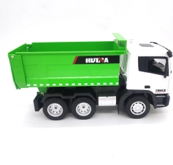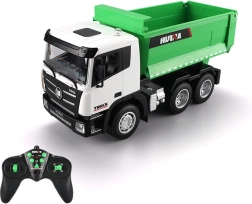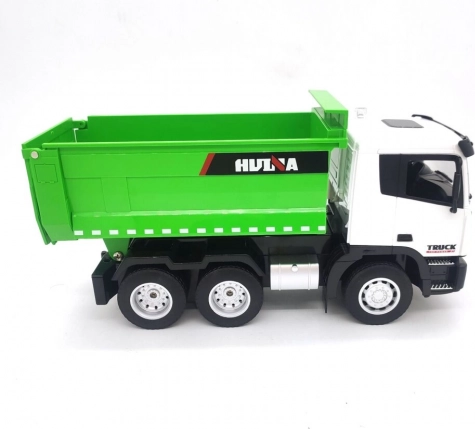 Zielona zdalnie sterowana ciężarówka w skali 1:18 oferuje realistyczną zabawę na placu budowy dla każdego małego konstruktora. Ten model umożliwia transport materiałów sypkich i potrzeb budowlanych za pomocą zdalnego sterowania.