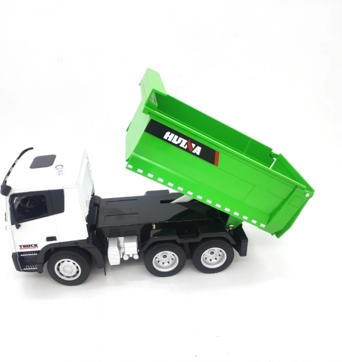 • Zdalne sterowanie: Kontroler 2,4 GHz umożliwia jazdę do przodu, do tyłu i na boki, w tym sterowanie światłami i podnoszeniem wywrotki jednym przyciskiem.