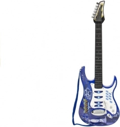 Gitara jest zasilana 4 bateriami AA (brak w zestawie) i jest odpowiednia dla dzieci od 6 lat. Zestaw zapakowany jest w kolorowe pudełko, a wszystkie elementy posiadają certyfikat CE.