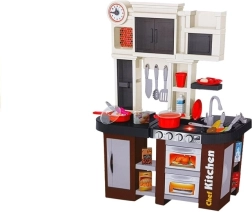 Kuchnia z realistycznymi elementami, w tym kuchenką, piekarnikiem i zlewem z prawdziwą baterią, zapewnia dzieciom autentyczne wrażenia z zabawy.