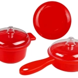 Zestaw zawiera naczynia, takie jak garnek, patelnia i przybory kuchenne, co pobudza kreatywność i tworzenie własnych przepisów.