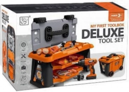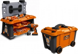 Dzięki praktycznej szafce do przechowywania i przenoszenia narzędzi wszystko pozostaje zorganizowane i pod ręką. Wiertarka wydaje realistyczne dźwięki i jest ukształtowana tak, aby pasowała do małych dziecięcych dłoni. Dzieci odkryją magię napraw i tworzenia własnych projektów za pomocą dołączonych narzędzi!