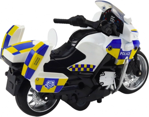 Dziecięce policyjne motocykle należą do najpopularniejszych zabawek małych chłopców. Służą nie tylko do zabawy, ale także do kolekcjonowania. Nasz motocykl wykonany jest z trwałego materiału, posiada sygnały dźwiękowe oraz ruchomy układ kierowniczy. Wystarczy popchnąć zabawkę do tyłu i puścić, aby ruszyła.