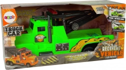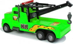 Ta solidna plastikowa laweta stanie się gwiazdą każdego dziecięcego garażu. Realistyczne detale, zielone malowanie z płomiennymi naklejkami oraz działający dźwig z wyciągarką pobudzają wyobraźnię i samodzielną zabawę. Dzięki wysuwanej linie obsługiwanej korbką i mocnemu hakowi łatwo „odholuje” inne zabawki w bezpieczne miejsce.