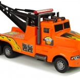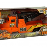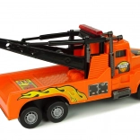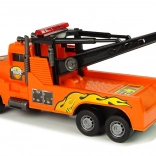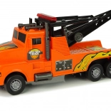 Rozpocznij akcję ratunkową z pomarańczową, plastikową lawetą ze stylowymi płomieniami. Obracany żuraw, wysuwana lina i ręczna wyciągarka pozwalają łatwo „odholować” inne zabawki w bezpieczne miejsce. Napęd bezwładnościowy na naciąg wsteczny dodaje autu prędkości i porcji zabawy.