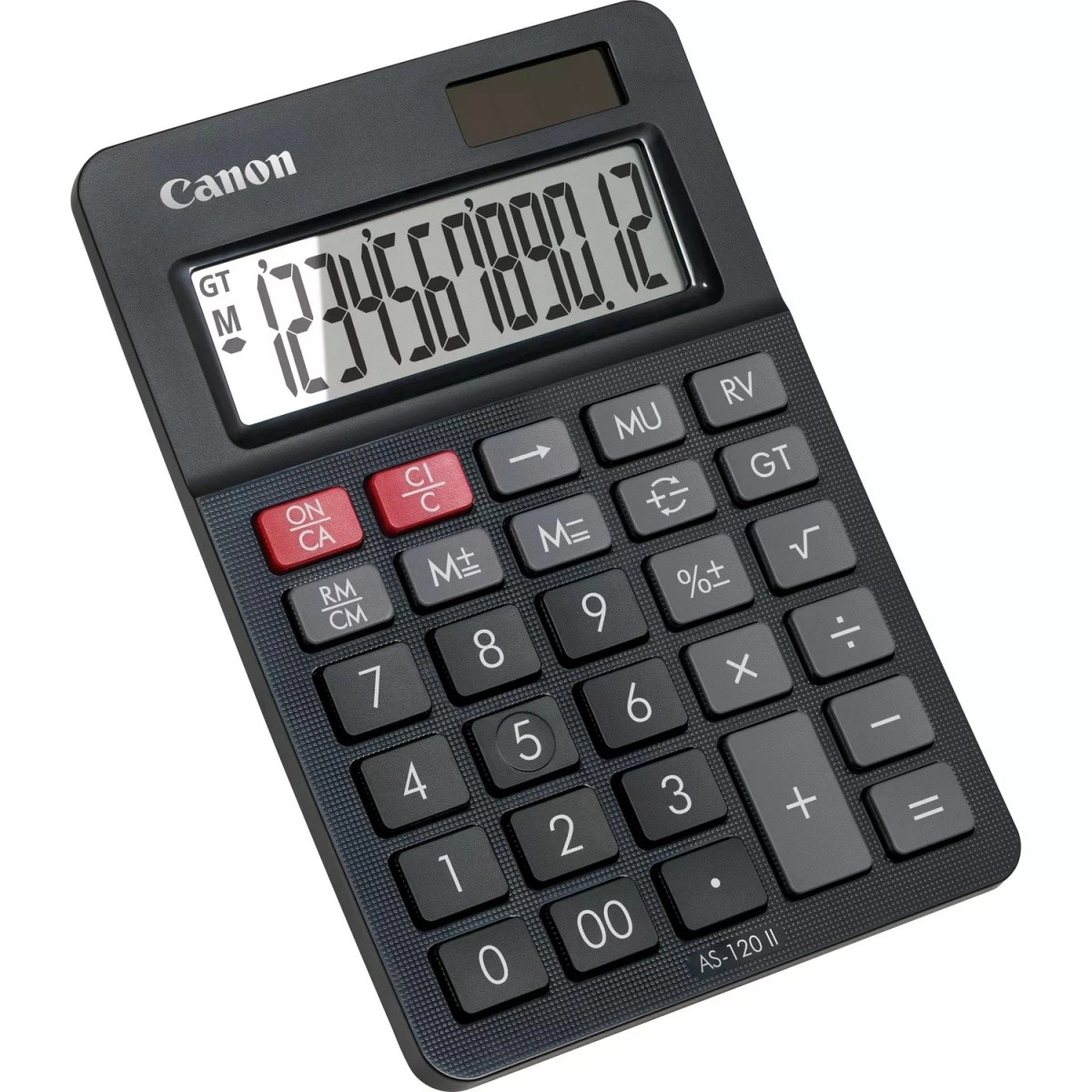 Kalkulator Canon AS-120 II to kompaktowy i praktyczny 12‑pozycyjny kalkulator biurkowy z pionowo nachylonym wyświetlaczem, idealny do użytku biurowego. Oferuje funkcje marży, storna i sumy całkowitej, które ułatwiają wykonywanie złożonych obliczeń. Ten kalkulator jest także ekologiczny – niektóre jego części są wykonane z materiałów z recyklingu firmy Canon.