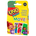 UNO Junior Move to dynamiczna wersja uwielbianej gry UNO zaprojektowana dla najmłodszych graczy. Łączy ruch, śmiech i szybką zabawę karcianą – podczas wykładania kart dzieci wykonują zabawne zadania, takie jak przysiady, skoki czy klaśnięcia. Proste zasady, kolorowe karty i elementy akcji wspierają koncentrację, koordynację oraz wspólną rodzinną zabawę.