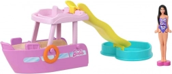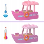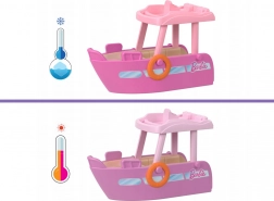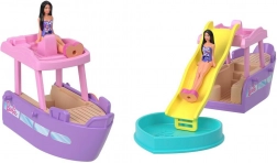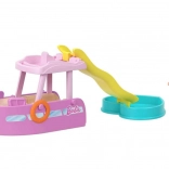 - Łódź, odpinana zjeżdżalnia, serduszkowy basenik, mini laleczka w stroju kąpielowym