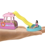 Odkryj urok świata MINI BARBIE LAND z uroczą mini łodzią, która w mgnieniu oka zamienia się w wesoły wodny park. Zestaw zawiera łódź z odpinaną zjeżdżalnią i turkusowym serduszkowym basenikiem oraz mini laleczkę. Idealny do podróży, kolekcjonowania i kreatywnej zabawy. Kompaktowe wymiary, przemyślane detale i funkcjonalna zjeżdżalnia zapewnią mnóstwo wyobrażeniowej zabawy.