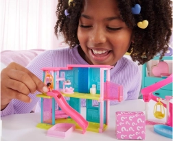 W tajemniczym pudełku czeka na ciebie mini lalka, jeden z uroczych zwierzaków (kot, pies, króliczek, kanarek lub żółw) oraz domek dla zwierzaka. Zestaw jest kompatybilny z innymi kompletami MINI BARBIE LAND (sprzedawane oddzielnie), dzięki czemu dzieci mogą stworzyć całe miniaturowe miasteczko.