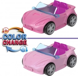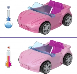 Samochodzik po zanurzeniu w zimnej wodzie zmienia kolor, a w ciepłej wraca do poprzedniego – efekt można powtarzać wielokrotnie. Dzięki rozmiarowi zestaw łatwo przenosić i jest świetnym prezentem oraz uzupełnieniem kolekcji. Łącz z innymi zestawami Mini Barbie Land, aby stworzyć całe mini miasteczko.