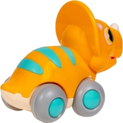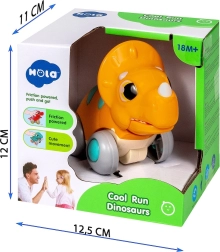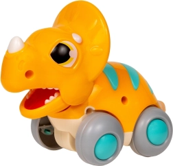 Interaktywny dinozaur na kółkach został zaprojektowany dla małych odkrywców. Napęd frykcyjny umożliwia łatwe wprawienie w ruch – wystarczy popchnąć i obserwować, jak jedzie i porusza szczęką. Wytrzymały, wysokiej jakości plastik bez BPA oraz obłe kształty zapewniają bezpieczną zabawę na różnych powierzchniach.