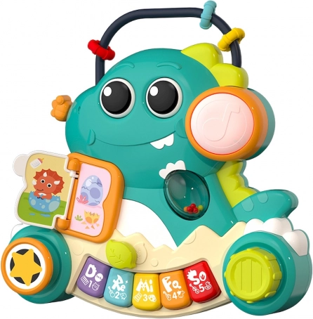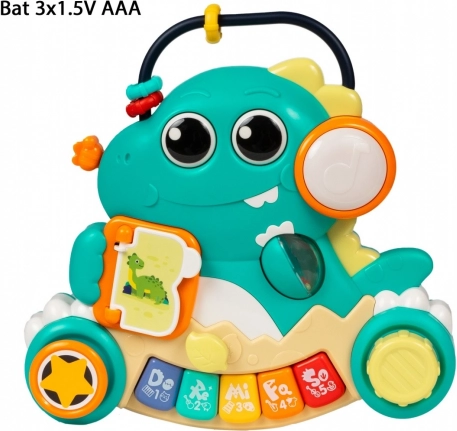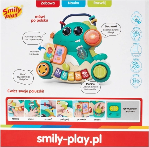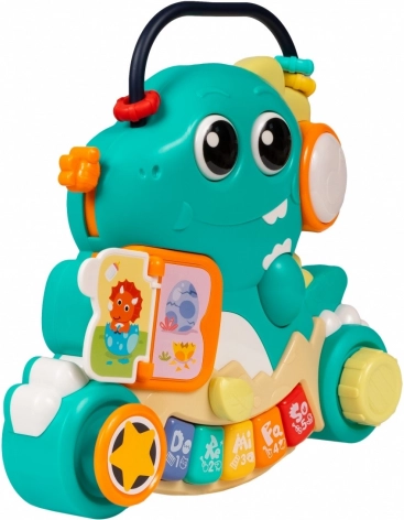 Mój Dino to idealna pierwsza zabawka muzyczna dla najmłodszych. Łączy zabawę z nauką – mówiąca książeczka i kolorowe klawisze wspierają wczesny rozwój języka oraz koordynację ręka–oko. Obrotowe, wciskane i przesuwane elementy zachęcają dziecko do aktywnego odkrywania i rozwijają małą motorykę.