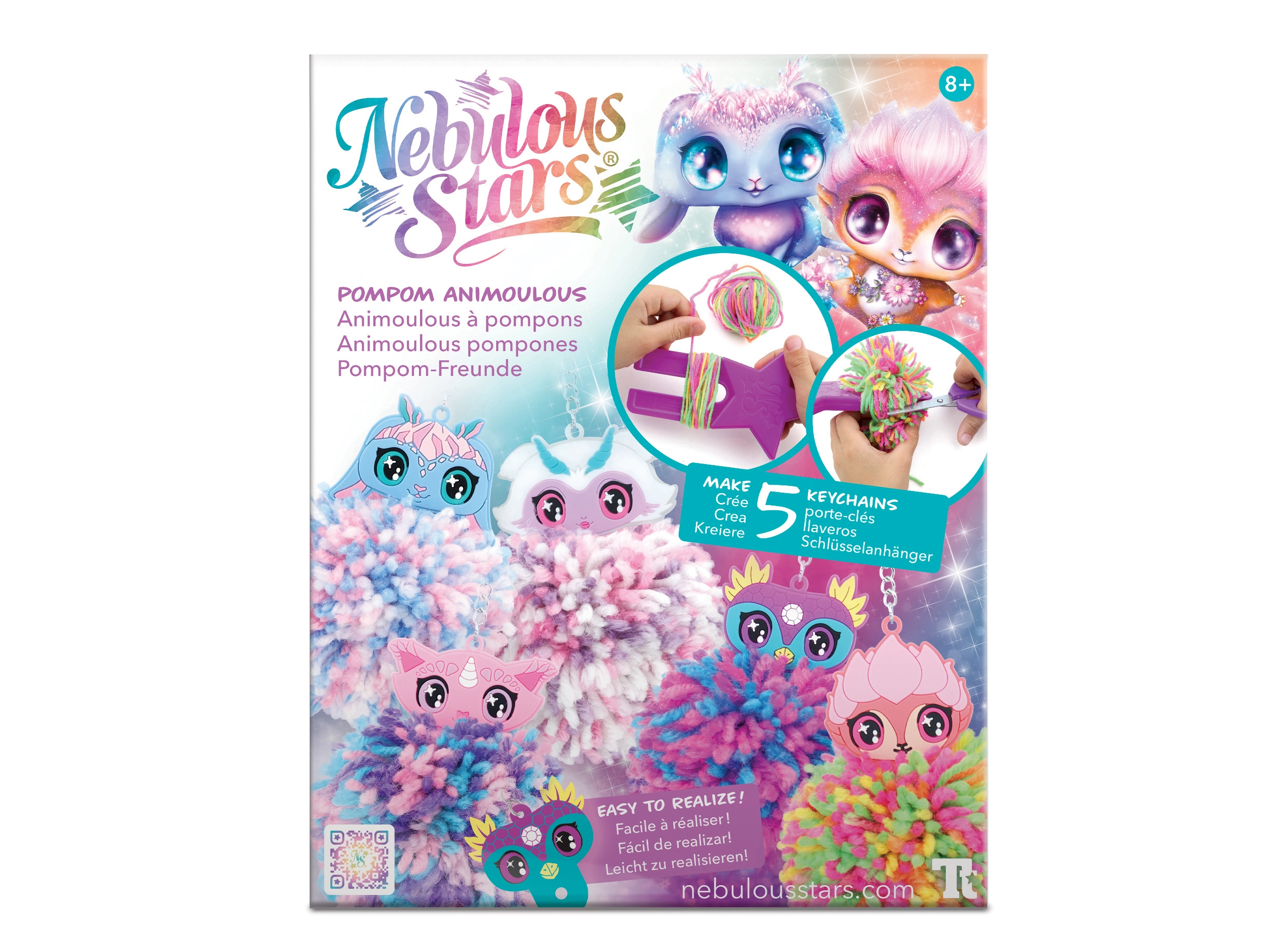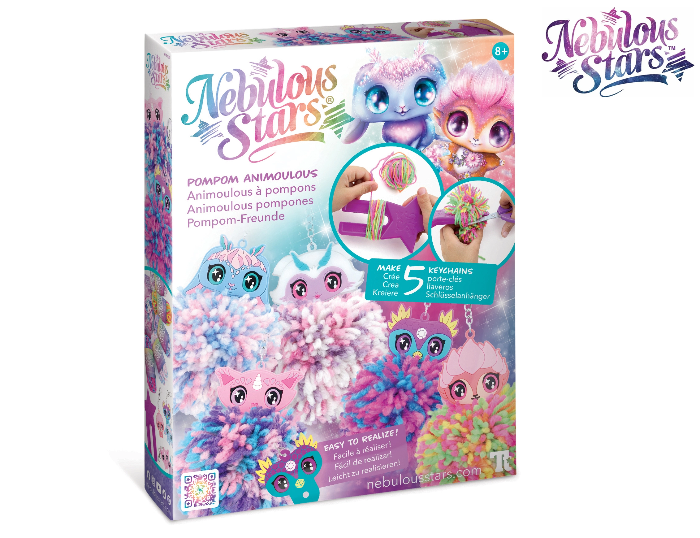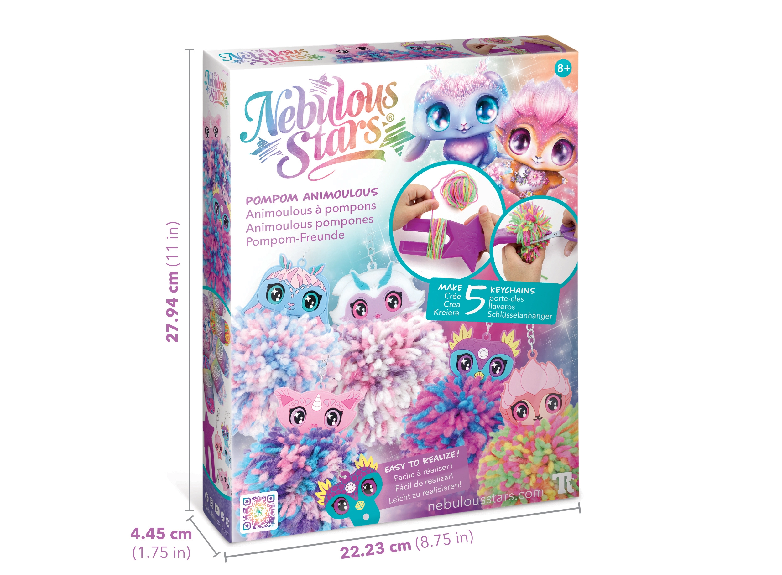 Stwórz urocze breloki z pomponów w magicznym świecie Nebulous Stars. Zestaw zawiera wszystko, czego potrzebujesz: 5 uchwytów na pompony z Animoušem, kolorowe akrylowe włóczki, narzędzie do robienia pomponów oraz ilustrowane instrukcje. Idealny do rozwijania kreatywności, małej motoryki oraz do ozdabiania kluczy, plecaków i toreb.