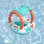 Okrągły kształt z wbudowanym siedziskiem i otworami na nogi zapewnia stabilność oraz naturalną pozycję dziecka podczas zabawy w wodzie.