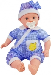 Ubrana w niebieską piżamkę z białymi detalami, którą można łatwo zdjąć i wyprać, dzięki czemu lalka pozostaje zawsze czysta. W zestawie znajduje się również butelka i smoczek dla jeszcze bardziej wiarygodnej opieki.