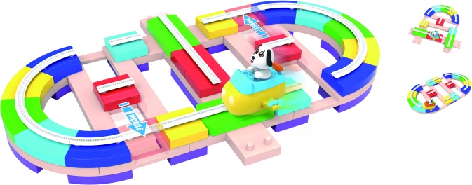 Ten zestaw toru samochodowego z uroczym pieskiem wspiera kreatywność, motorykę małą i wyobraźnię dzieci. Dzięki 82 elementom, ruchomym częściom i możliwości zmiany kierunku jazdy mali konstruktorzy mogą w każdej chwili zbudować nową pętlę i odkrywać różne warianty zabawy.