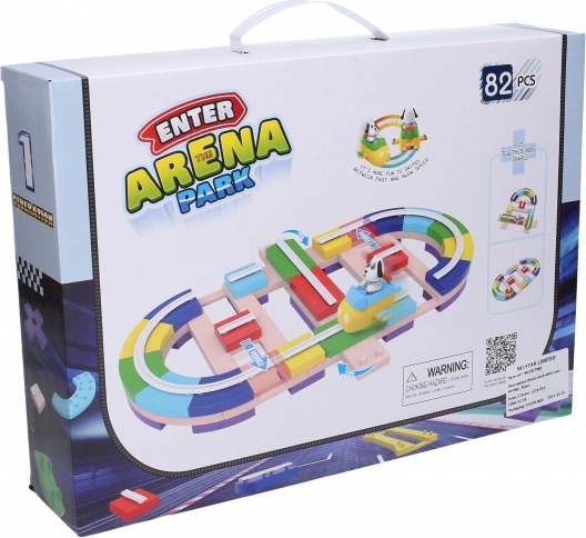 Zabawna kolejka samochodowa dla dzieci oferuje tor o długości 118 cm, 82 elementy konstrukcyjne oraz ruchome części, dzięki którym mali kierowcy spędzą godziny na kreatywnej zabawie. W zestawie znajduje się wózek z 2 trybami prędkości, figurka pieska oraz przyssawki dla lepszej stabilności. Dzięki ręcznemu przestawianiu elementów można w trakcie jazdy zmieniać kierunek i układ toru.