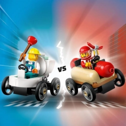 Zestaw do zabawy LEGO CITY oferuje wysoką rampę, dwa oryginalne autka wyścigowe (hot dog i toaleta) oraz 4 minifigurki, w tym kierowców – sprzedawcę hot dogów i hydraulika. Dzieci łatwo ustawiają pojazdy na szczycie rampy, przesuwają dźwignię i obserwują, jak auta pędzą ze startu. Świetny wybór do samodzielnej i wspólnej zabawy.