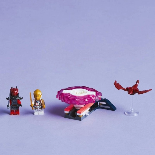 Przeżyj wir ninja akcji z zestawem LEGO NINJAGO Spinjitzu smoczy spinner Sory. Jedno naciśnięcie wyrzutni i spinner zaczyna się kręcić, aby trafić w cel i uwolnić dwa elementy mocy. Zestaw zawiera minifigurki Sory i smoczego wojownika z bronią oraz urocze smocze stworzonko – idealne dla fanów od 6 lat.