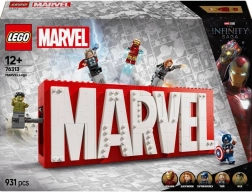 Doświadcz wyjątkowego połączenia budowania i eksponowania dzięki wyrazistemu czerwono-białemu napisowi MARVEL, w którym kryje się pięciu legendarnych bohaterów: Hulk, Thor, Iron Man, Czarna Wdowa i Kapitan Ameryka. Naciśnij trzy oddzielne przyciski na górze i zobacz, jak minifigurki wyskakują z logo – akcja jak z filmów MARVEL Studios ożywa tuż przed Tobą.