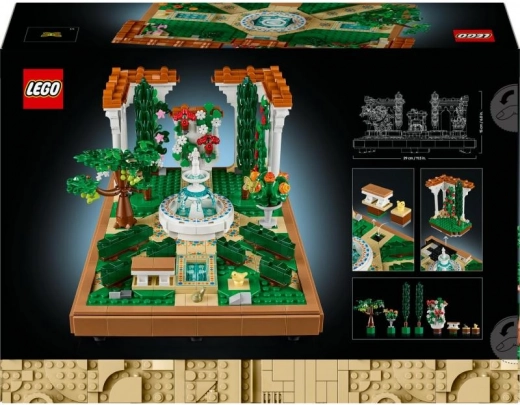Odkryj relaksujące doświadczenie budowania i elegancką dekorację wnętrza. Z zestawu LEGO Icons stworzysz szczegółową ogrodową scenę z pergolami, drzewami i wielopoziomową fontanną. Modułowa konstrukcja pozwala dowolnie przekładać sekcje i znaleźć idealną kompozycję do domu lub biura. Delektuj się budową z 1302 elementów i wystaw model, który celebruje piękno architektury ogrodowej, kreatywny relaks i elegancki design.