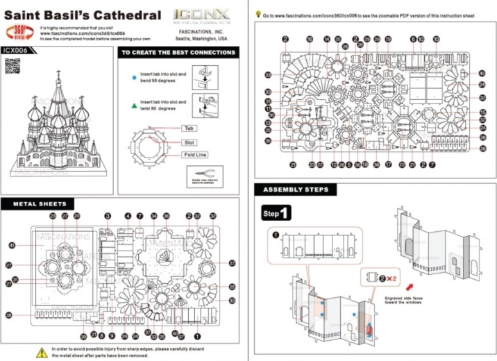 METAL EARTH ICONX prezentuje dopracowany metalowy model 3D soboru Wasyla Błogosławionego – ikonicznego symbolu Moskwy. Z cienkich stalowych blaszek, za pomocą zamków i zagięć, zbudujesz miniaturową reprodukcję z oszałamiającymi detalami, które zachwycą w domu, biurze i szkole.
